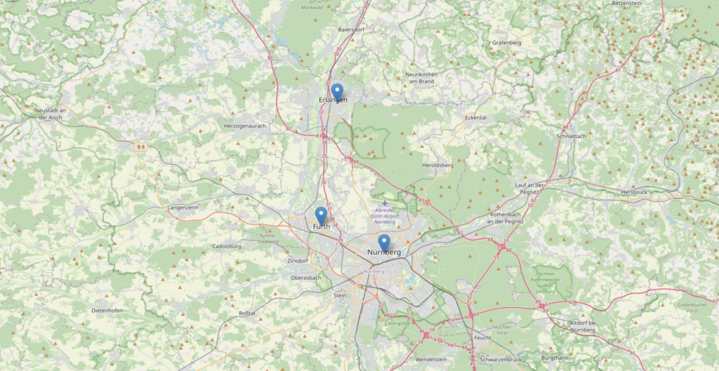 Wir arbeiten in Erlangen, Nürnberg, Fürth und Umgebung – je nach Projekt auch bis zu 100 km Umkreis. Transporte führen wir bundesweit aus.